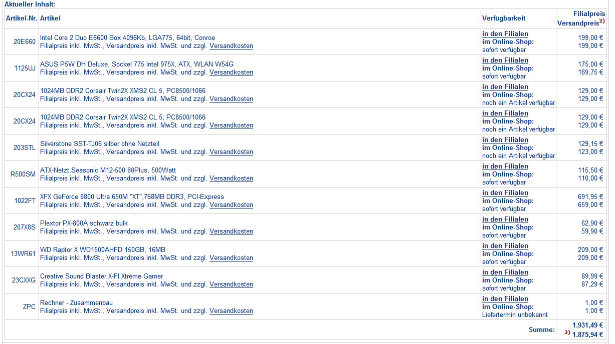 Die Wasserkühlung habe ich deswegen genommen, da ich so den Core 2 Duo E6600 @ 3.4GHz mit 5 Jahren Garantie bekomme (ist doch gut, oder?)